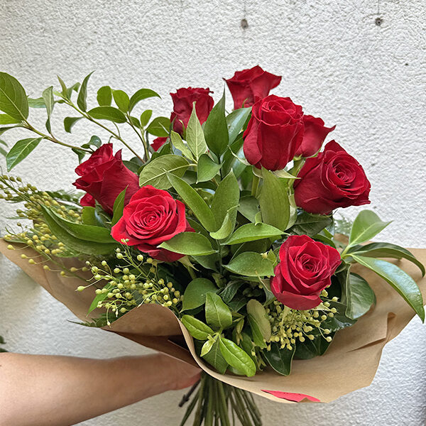 Ramos de mano hechos con flor de temporada. Pueden realizarse en diferentes especies y colores. A continuación presentamos una selección, hay cuatro tallas disponibles: la pequeña, mediana, grande y extragrande. Sus precios son 35, 45, 60 y 75 euros respectivamente.
